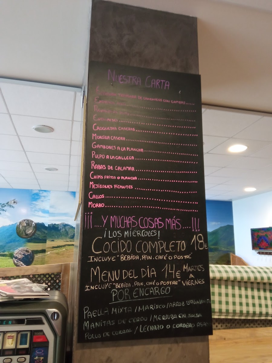 The menu at Restaurante Casa Tino features a variety of traditional Spanish dishes with a focus on tapas, grilled items, and regional specialties. Visitors can expect an assortment of small plates such as tapas including chistorra, calamari, and croquetas made with cecina and peppers, alongside larger dishes like roasted ham (jamón asado), grilled beef churrasco, and seafood options including pulpo a feira and sea bass (lubina).